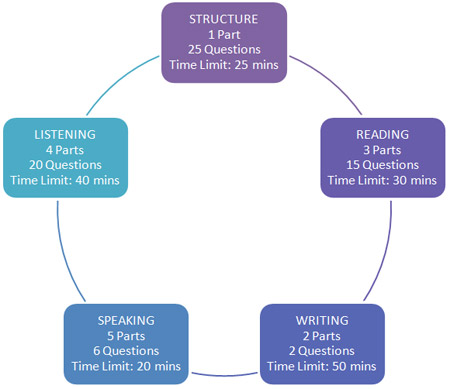 - Speaking (3 parts, 11-14 minutes)